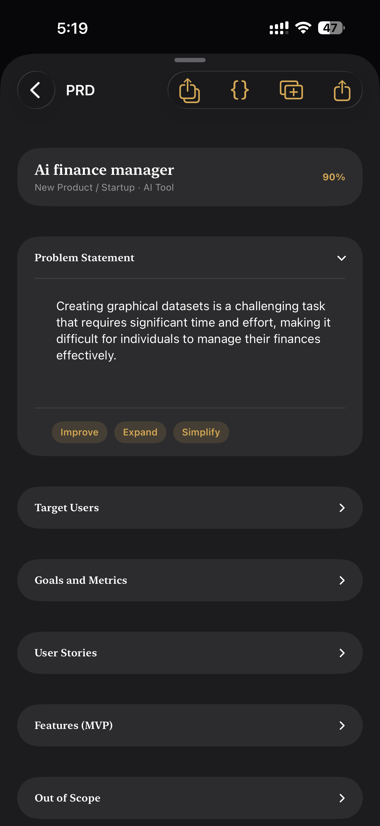 Turn rough product ideas into structured PRDs that Scribe can keep enriching over time.